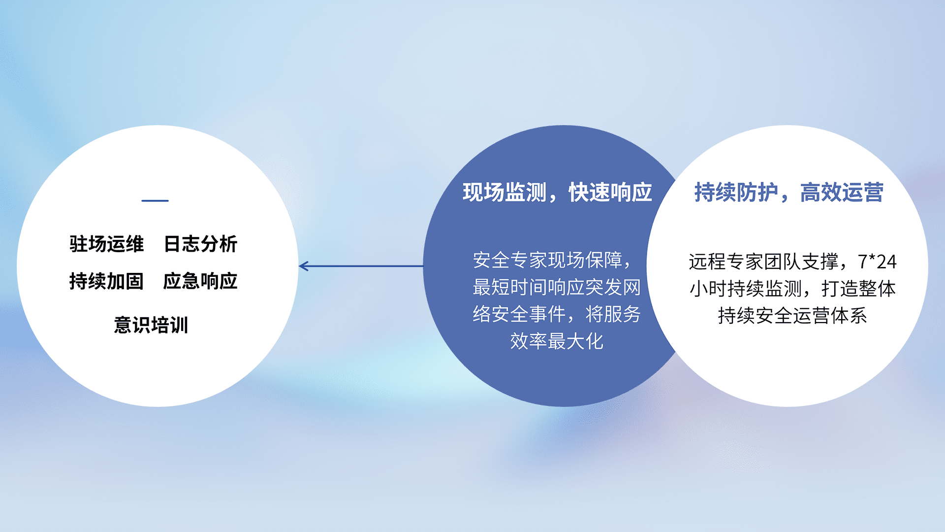 7X24小时持续监测安全事件,保持安全策略有效性,降低资产脆弱性风险,,精准拦截黑客攻击,,减少被黑客利用的机会,,,,第一时间遏制,,,,降低损失。。
